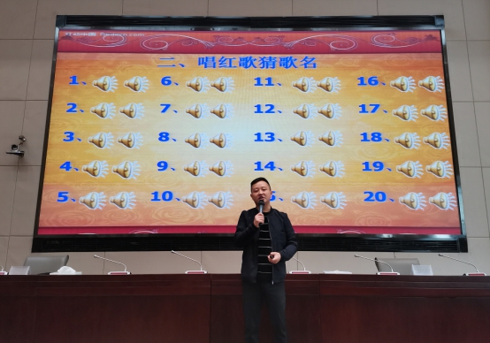 接着陈业渊老师带着我们唱《黄安谣》:“小小黄安,人人好汉;铜锣一响,四十八万;男将打仗,女将送饭”,这是土地革命战争时期流传于鄂豫皖苏区的一首民谣,反映了黄安县全域人民跟着共产党进行土地革命的热情,也反映了老区人民为真理为自由为革命竭诚奉献的精神。《一颗红心拿不去》、《八月桂花遍地开》、《三大纪律八项注意》等几首经典红歌深深打动了我们。互动环节,我们进行了猜歌名的小游戏,最后全体同学起立合唱《没有共产党就没有新中国》掀起了一阵高潮。