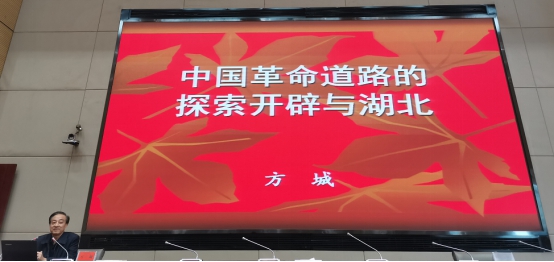 下午方城研究员给我们讲授《中国革命道路的探索开辟与湖北》。他通过生动的事例讲述了中国共产党人在探索革命真理、开辟革命道路上的艰难历程,讲述了湖北在大革命时期作为党组织重要发祥地、工人运动高潮地、北伐战争主场地、武装起义首发地、重要的革命根据地、五大红军主力诞生地的重要地位和作用,揭示了中国共产党人为革命求真务实的精神、为人民不懈奋斗的精神、为事业自我革命的精神、为真理竭诚献身的精神,指出只有中国共产党才能救中国、才能领导中国人民走向幸福、实现中华民族伟大复兴,充分印证了习近平总书记所说的“道路决定命运。无论搞革命、搞建设、搞改革,道路问题都是最根本的问题”。