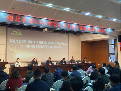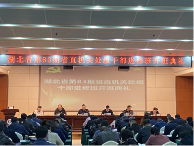 2021年3月9日上午,湖北省第83期省直机关处级干部进修班开班典礼在华中师范大学管理教育综合楼举行。湖北省委组织部干教处副处长张海涛、华中师范大学党委副书记陈迪明、湖北省党政干部华中师范大学培训部主任卢子洲、湖北省党政干部华中师范大学培训部副主任陈雪玲、华中师范大学原宣传部部长郭红霞等出席了此次开班典礼,开班典礼由华中师范大学培训中心党委书记林更茂主持。