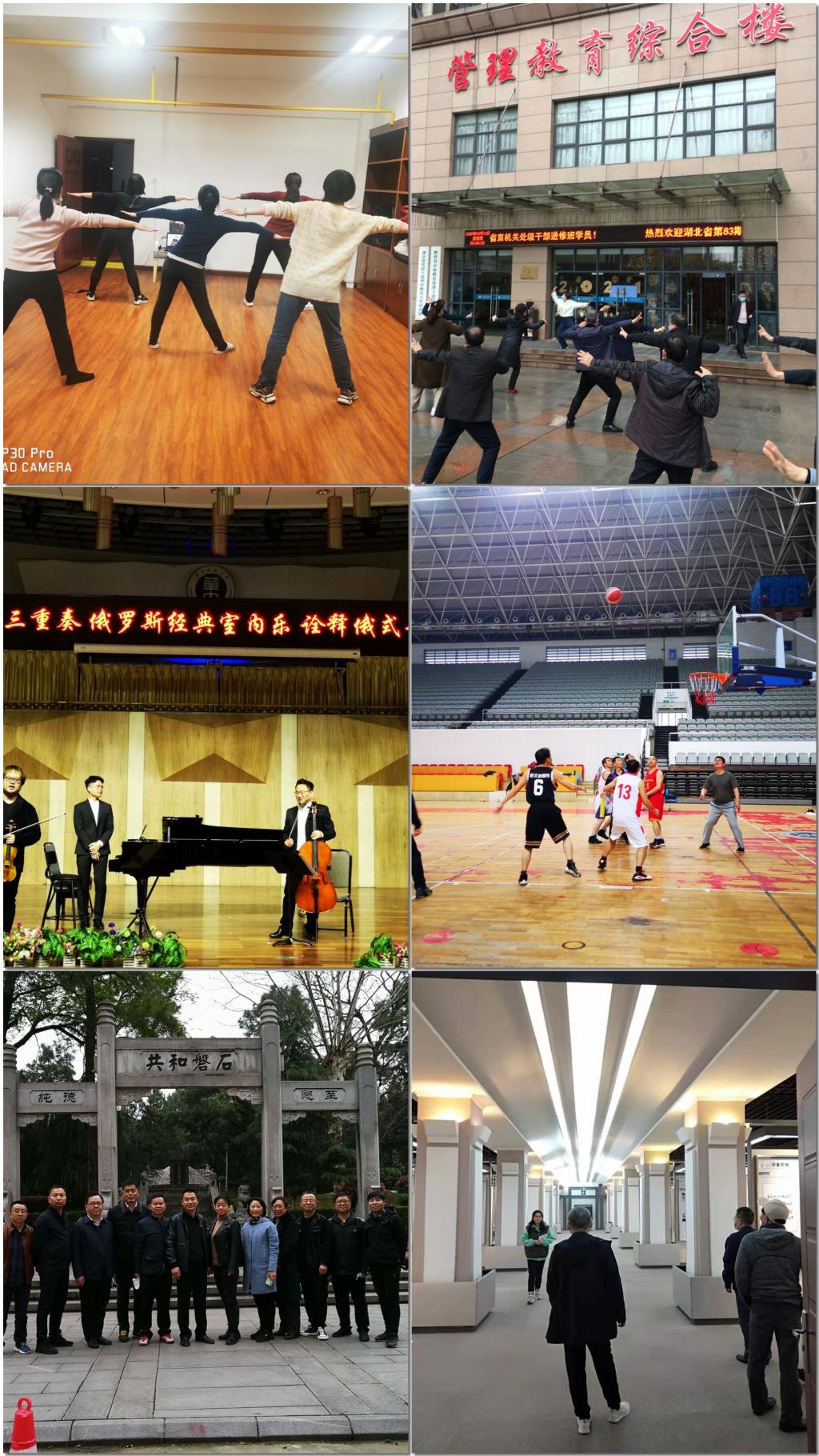 各类文体活动受到学员欢迎。每天课堂间隙的八段锦吸引了越来越多学员参加,做完操之后,大家都面带微笑,轻松愉悦地走进课堂,继续听课。周一、周三晚上,篮球场、羽毛球场、乒乓球台前都活跃着83期学员矫健的身影,大家一起切磋球技、在运动中加深感情。瑜伽小组每晚都坚持组织锻炼,健身操和瑜伽组合训练,动静相宜的锻炼方式深受学员欢迎。在体育锻炼之余,学员们的文化生活也很丰富。三班组织学员欣赏音乐会,二班组织学员参观黎元洪墓,一班组织学员集体参观华师校史馆。学员们纷纷表示,丰富多彩的文体活动陶冶了情操,锻炼了身体,增进了了解,加深了友谊,在接下来的培训生活中要更加积极主动参加文体活动,乐享春日桂子山上的美好培训时光。