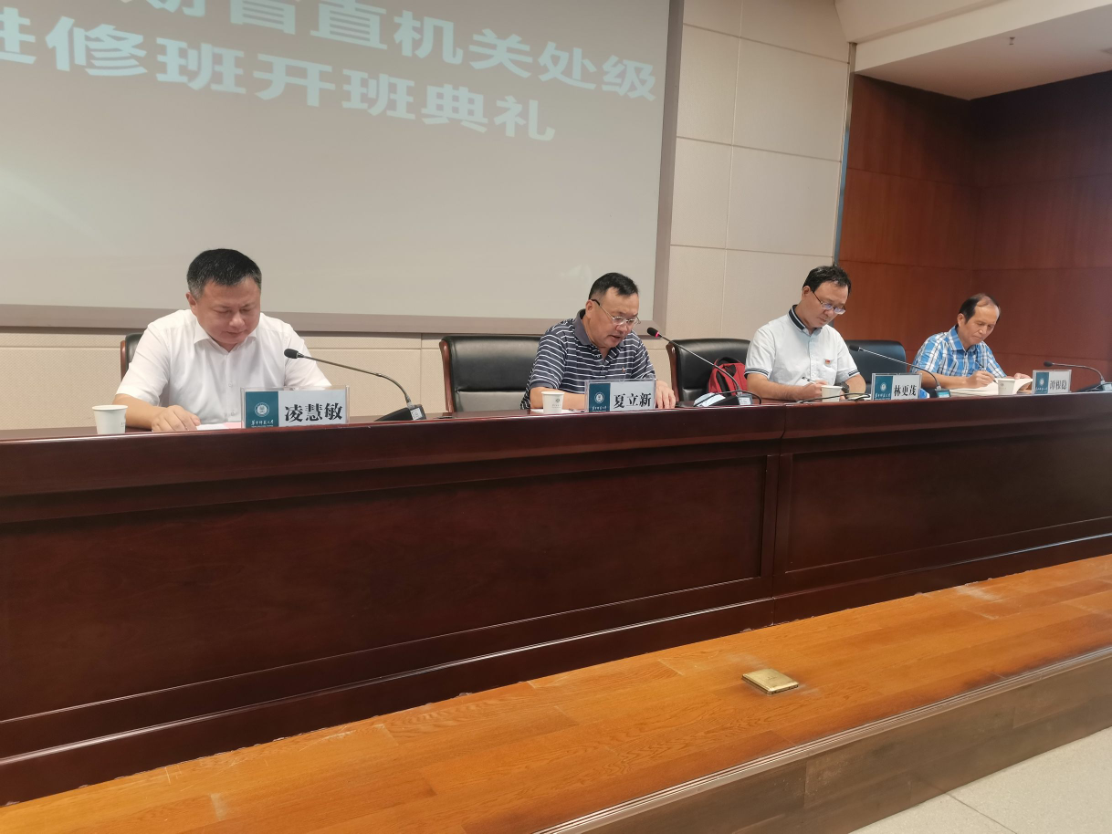 9月7日上午,湖北省第85期省直机关处级干部进修班开班典礼在华中师范大学管理教育综合一楼举行。湖北省委组织部干教处处长凌慧敏、华中师范大学副校长夏立新、湖北省党政干部华中师范大学培训部主任卢子洲、湖北省党政干部华中师范大学培训部副主任陈雪玲、华中师范大学原文学院党委书记谭根稳等出席了此次典礼,典礼由华中师范大学培训中心党委书记林更茂主持。
