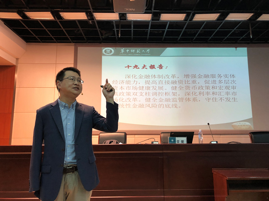 2019年10月9日上午,常健教授第一次以海南大学法学院教授的身份在华中师范大学为湖北省第79期省直机关处级干部进修班上课,他授课的题目是《金融稳定保障机制、法律规则与顶层设计-对习近平总书记金融改革思想学习体会》。本以为针对金融行业、经济法规这一堂课程会有较高专业门槛要求,比较晦涩难懂,哪里想到常健教授硬是站着讲了近三个小时,用一场稳稳的金融“故事会”征服了所有现场的学员。“海发行的故事”、“魔鬼交易员的故事”、“华尔街搬砖的故事”、“Watch Dog的故事”…博古论今,贯穿中西,将英美法系、大陆法系以及现实社会中对于防范金融风险、保障金融稳定的概念、问题、措施作了形象生动的梳理与解读。