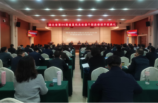 11月16日上午,湖北省第86期省直机关处级干部进修班开班典礼在华中师范大学管理教育综合大楼一楼多功能厅顺利举行。湖北省委组织部干教处副处长张海涛、华中师范大学副校长夏立新、湖北省党政干部华中师范大学培训部主任卢子洲、湖北省党政干部华中师范大学培训部副主任陈雪玲、华中师范大学原文学院党委书记、本班班主任谭根稳等出席了此次开班典礼。典礼由华中师范大学校长助理、培训中心党委书记林更茂主持。