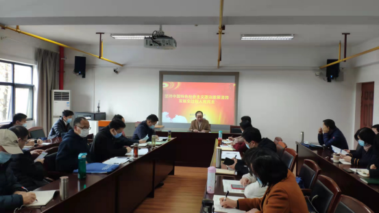 为深入学习贯彻习近平总书记系列重要讲话和十九届六中全会精神,巩固党校学习成果,提升学员理论水平和党性修养,3月23日下午,第87期省直机关处级干部进修班三班全体学员,在五楼会议室召开“如何坚持中国特色社会主义政治发展道路,发展全过程人民民主”专题研讨会。会议由三班学习委员徐卿同志主持,靳甫运、戴蓉、王海军、徐卿等四名同志作主旨发言,其他同志作交流发言。