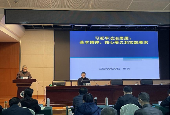 为进一步弘扬法治精神、增强法治意识,3月26日上午,湖北省党政干部华中师范大学培训部邀请武汉大学法学院博士生导师廖奕教授,为湖北省第87期省直机关处级干部进修班学员作了以《习近平法治思想:基本精神、核心要义和实践要求》为专题的辅导讲座。